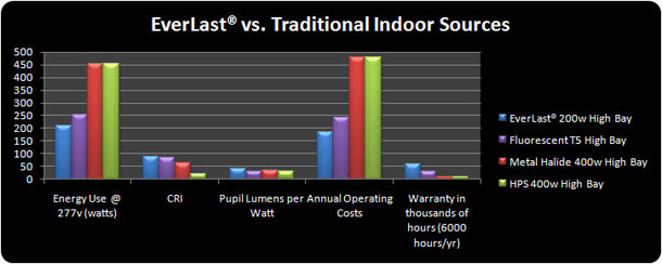 Metal Halide, High Pressure Sodium, and Fluorescent High Bays Compared to EverLast® Induction Technology